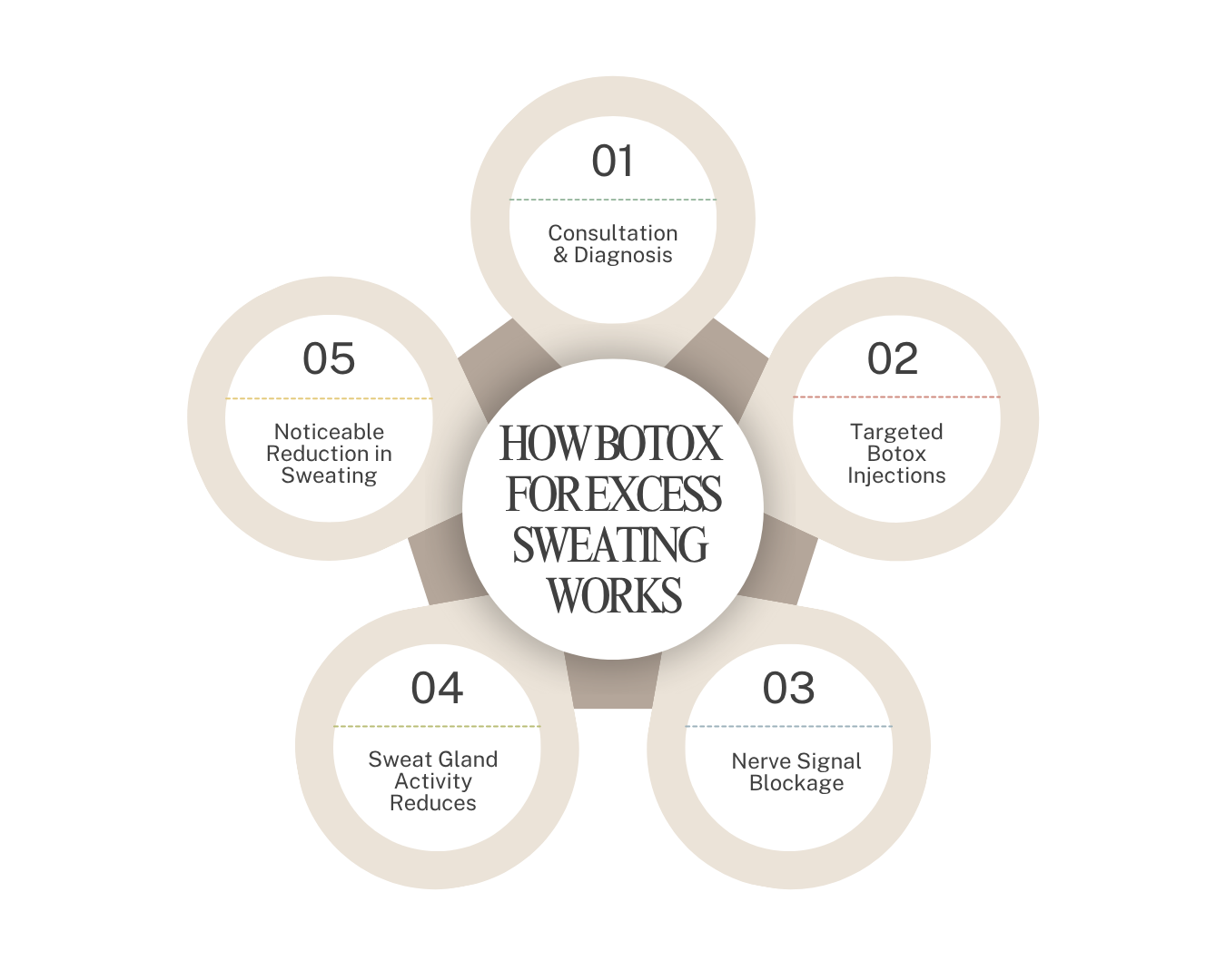 Botox (botulinum toxin) interrupts the nerve signals that tell your sweat glands to activate. When these signals are blocked, the glands simply don’t produce sweat. Importantly, Botox only affects the treated areas, so your body will still sweat normally elsewhere to regulate temperature.