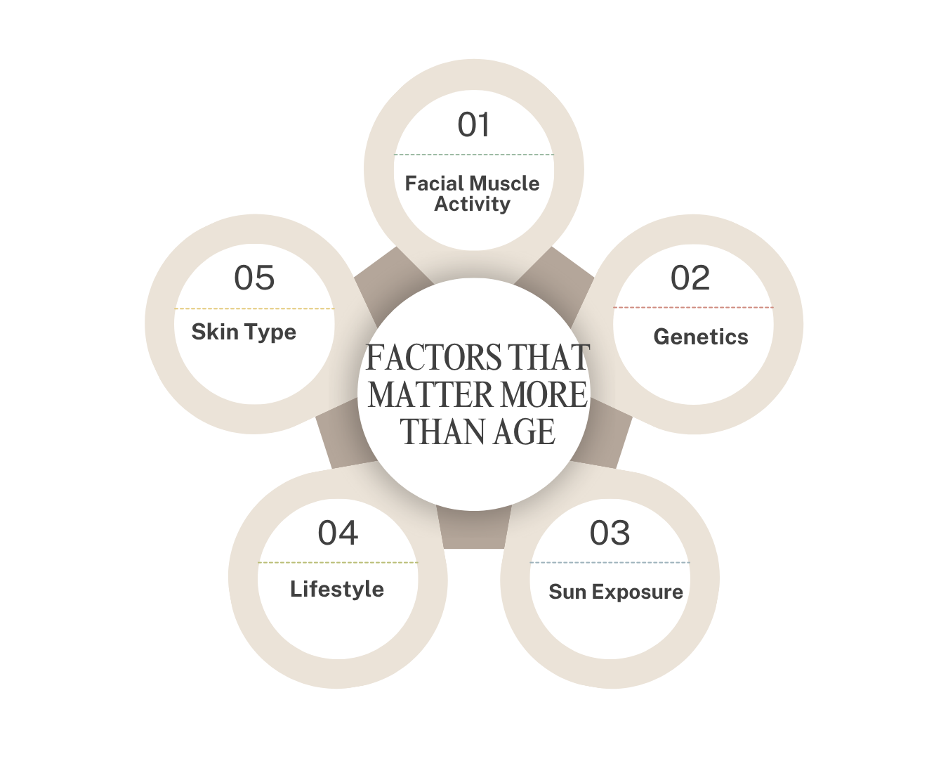 Lifestyle: Smoking, dehydration, stress, and poor sleep can all impact how quickly the skin shows signs of aging.