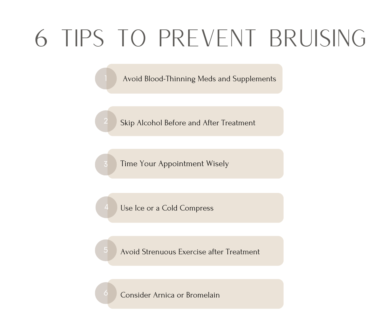 When bruising occurs, it is typically mild and short-lived. Still, there are ways to prepare your skin and body before your appointment to greatly reduce the risk.